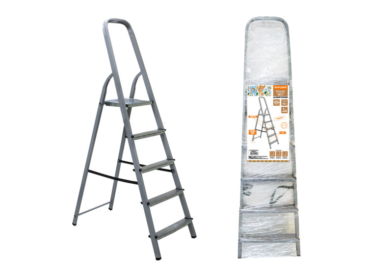 TDM Стремянка стальная ССт-5, 5 ступеней с цинковым покрытием, стальной профиль, h=1050 мм, Народная.