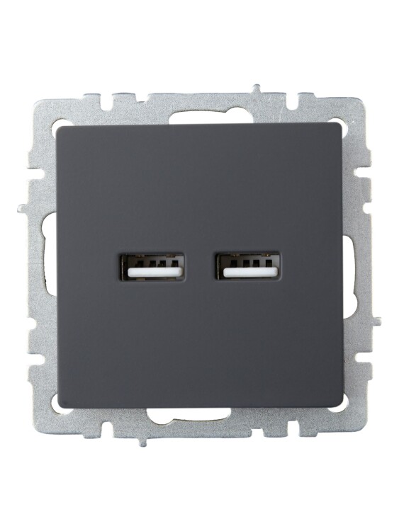 IEK BRITE BASE Графит Розетка USB A+A 3,1А РЮ10-1-БрГ