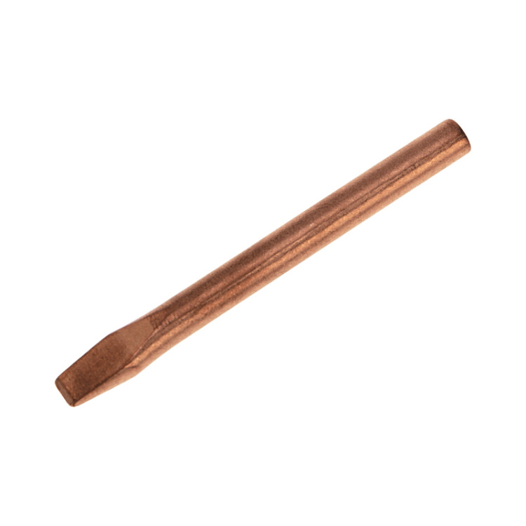 Жало медное представляет собой цилиндрический стержень, имеющий с одного конца один из множества типов форм. Медь - это идеальный материал для изготовления паяльного жала с точки зрения теплопроводности. Кроме этого, медное жало имеет отличную теплоемкость. Подавляющее большинство паяльников комплектуются именно такими наконечниками. Тип жала: плоскийУстановочный диаметр: 6.8 ммПятно контакта: 6.2x00 ммМатериал изготовления: медный сплав,Общая длина: 80 мм