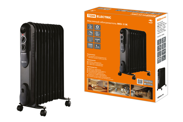 TDM Масляный обогреватель МО-11К, чёрный, 2500 Вт, 11 сек, рег. мощ. (1000/1500/2500 Вт), термостат.
