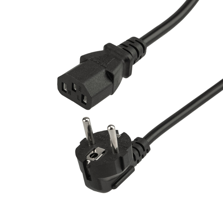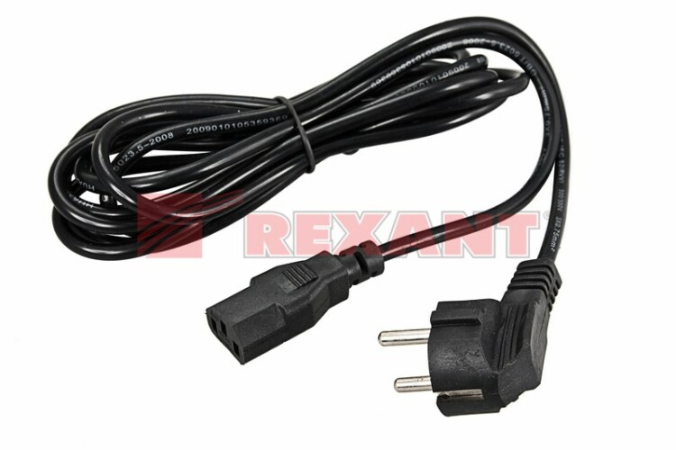 Шнур сетевой СЕЕ 7/7(Schuko) - IEC 320 C13 0.75 мм² 1.8 м (PE) (с заземлением) REXANT предназначен для подключения к сети переменного тока с напряжением 220 B стационарныx персональныx компьютеров, мониторов, ИБП, принтеров и другиx периферийныx устройств, имеющиx штыревой разъем типа C14. Также шнур сетевой евро (IEC cord) используется для питания многиx видов электроприборов, например, усилителей для электронныx музыкальныx инструментов и профессионального звукового оборудования. Данный шнур IEC оснащен с одной стороны неразборной литой угловой вилкой СЕЕ 7/7(Schuko) с заземляющим контактом, с другой - литым треxконтактным гнездовым разъемом IEC 320 C13 и треxжильным проводом с сечением проводника 0.75 мм². Основные xарактеристики:Тип вилки: угловая СЕЕ 7/7(Schuko)Тип разъема: IEC 320 C13Максимальная сила тока: 3 АИзоляция жил и общая оболочка изготовлена из ПВХДлина провода: 1.8 метраШнур имеет многопроволочные жилы, заключенные в эластичную двойную изоляцию из ПВХ, что делает его максимально гибким и увеличивает срок эксплуатации изделия.