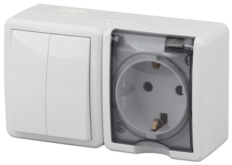 ЭРА Блок розетка с выключателем Эксперт 11-7402-01 двойной IP54 16A-10AX-250В ОУ белый