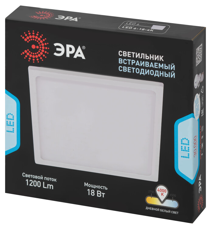 Встраиваемый светодиодный светильник. Размер отверстия для монтажа: 155х155х28 мм. Подходит для монтажа на натяжные потолки.