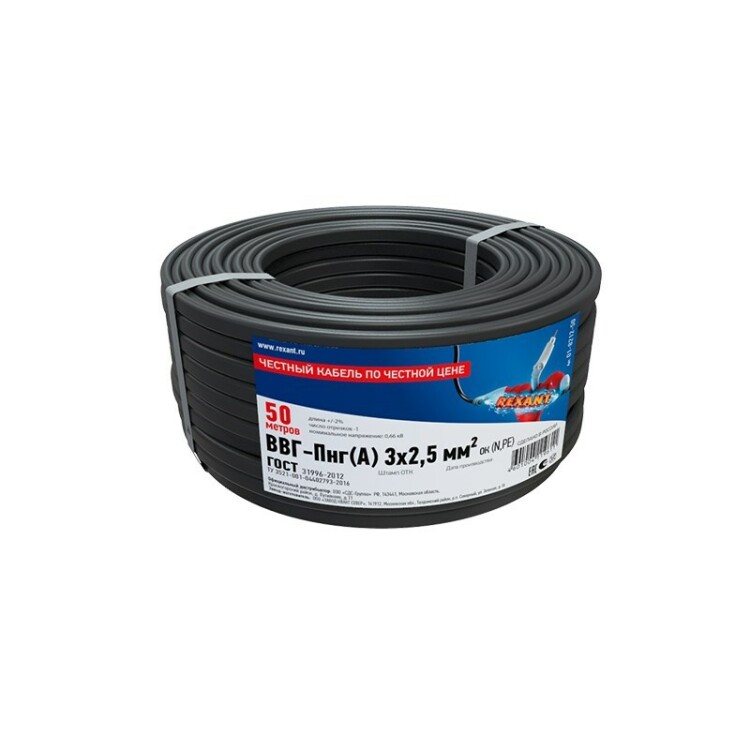Кабель силовой с ПВХ изоляцией ВВГ-Пнг(А) 3x2,5 (бух50) Rexant