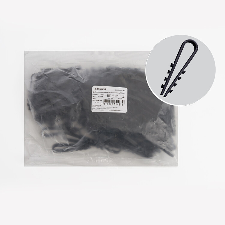 Хомут электромонтажный STEKKER DCL00-05-10, -, черный, материал - полипропилен, максимальный диаметр пучка - 10мм, нагрузка - -кг, диапазон рабочих температур -40°C - +85°C, рекомендуемая температура хранениня +5°C - +25°C