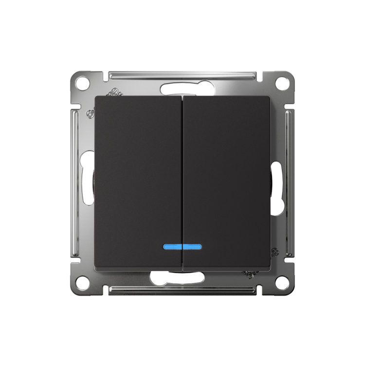 Механизм Systeme Electric (ранее Schneider Electric) серии AtlasDesign в цвете карбон выключателя 2-клавишного c подсветкой подходит для сетей 250 В, на ток 10 А. Благодаря светодиодной подсветке синего цвета изделие легко найти в темноте. Двухклавишный выключатель позволяет управлять двумя источниками света с одной точки. Лицевые детали из качественного ABS-пластика, устойчивого к царапинам и УФ-излучению. Благодаря покрытию «soft touch» к изделию приятно прикасаться.