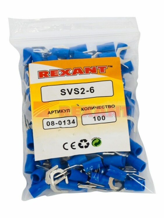 REXANT Наконечник вилочный изолированный 6.5мм 1.5-2.5мм² (НВи 2.5-6 / НВи 2-6) син ий.