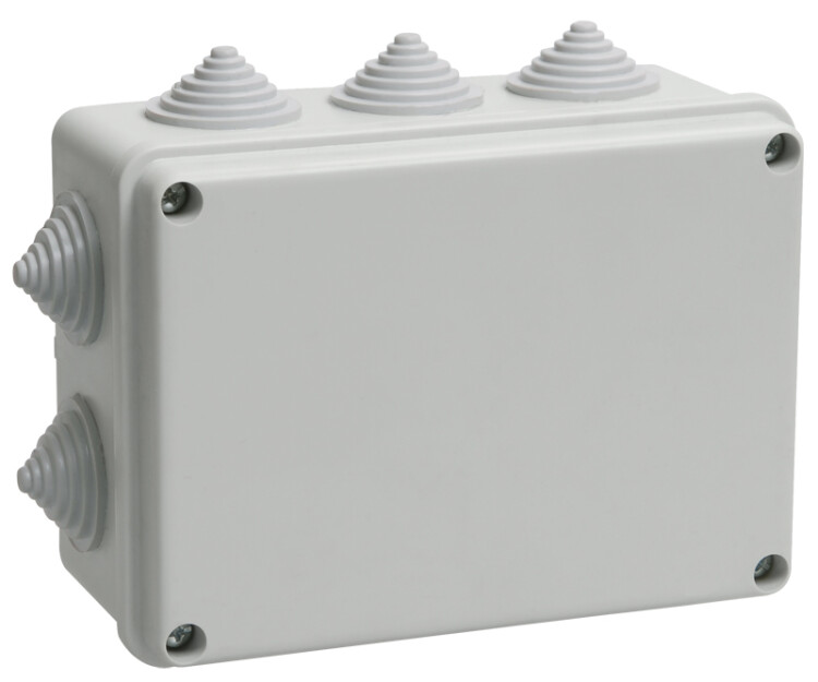 Монтажные коробки для открытого монтажа предназначены для разветвления проводов и кабелей, также для скрытия и дополнительной защиты мест коммутации. Используются как часть системы электрической канализации, состоящей из жестких и гофрированных труб. Коробки с повышенной степенью защиты могут быть использованы на открытом воздухе, а также во влажных и пыльных помещениях. Подходят для прямого монтажа. Материал изготовления: полистирол. Материал коробок является безгалогенным («HF» — halogen-free). Цвет: серый. Степень защиты: IP55. Температура эксплуатации: -25...+40. Количество вводов: 10 - D=25мм. Размер: 150х110х70мм.