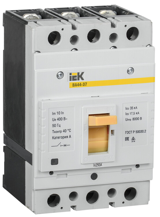 Автоматические выключатели ВА44 IEK предназначены для проведения тока в нормальном режиме и отключения тока при коротких замыканиях, перегрузке, недопустимых снижениях напряжения, а также для оперативных включений и отключений участков электрических цепей.