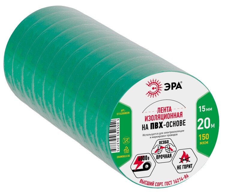 ЭРА Изолента ET1520GREEN ПВХ 15мм х 20м зеленая