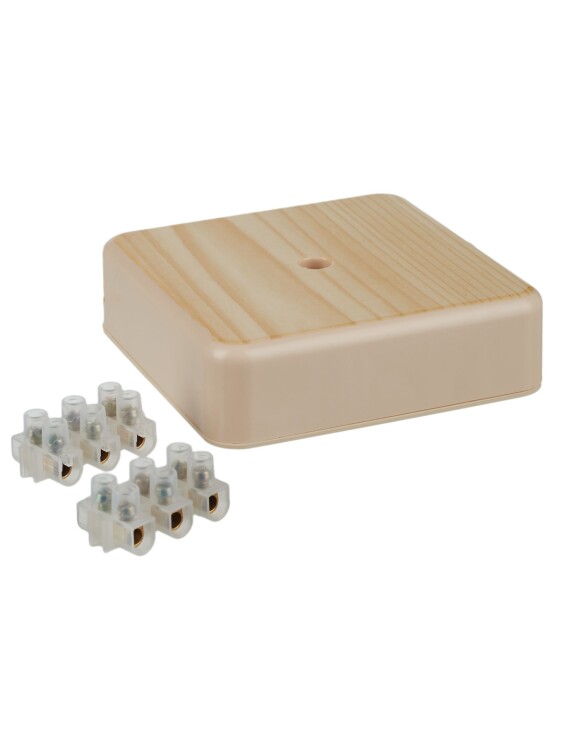 Монтажные коробки для открытого монтажа предназначены для разветвления проводов и кабелей, также для скрытия и дополнительной защиты мест коммутации. Коробки используются как часть системы электрической канализации, состоящей из кабельных каналов. Для удобства коммутации коробки поставляются в комплекте с клеммной колодкой. Крепление к стене осуществляется при помощи саморезов. Материал изготовления: полистирол. Материал коробок является безгалогенным («HF» — halogen-free). Цвет: сосна. Степень защиты: IP40. Температура эксплуатации: -25...+40. Размер: 75х75х20мм.