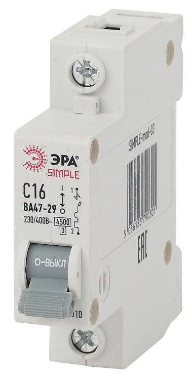 ЭРА SIMPLE-mod-03 SIMPLE Автоматический выключатель 1P 16А (C) 4,5кА ВА 47-29