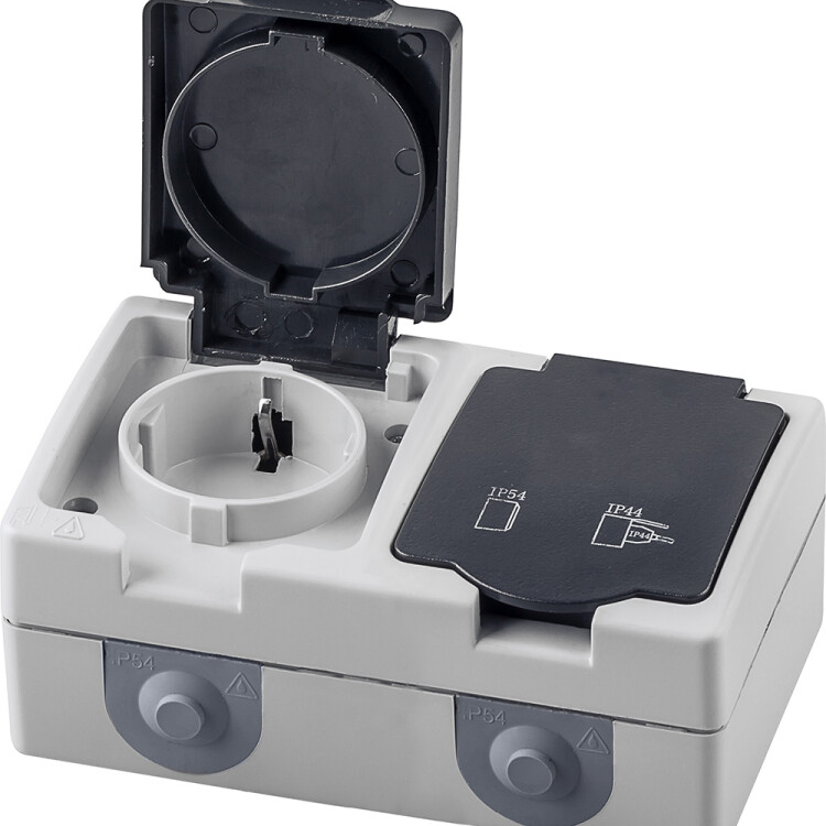 STEKKER PST16-12-54 Велена розетка 2-я с/з о/у 250В 16А серый/графит 1/5/50