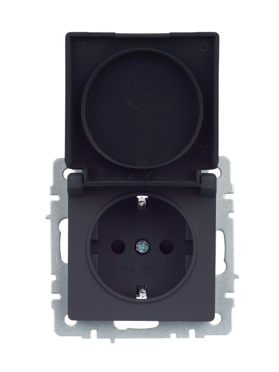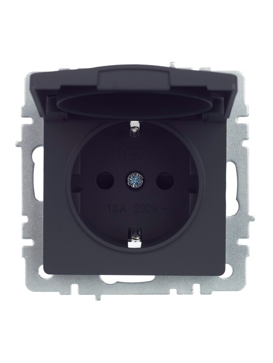 IEK BRITE BASE Графит Розетка 1-м с/з с защ. штор и крыш 16А IP44 РСбш10-3-44-БрГ