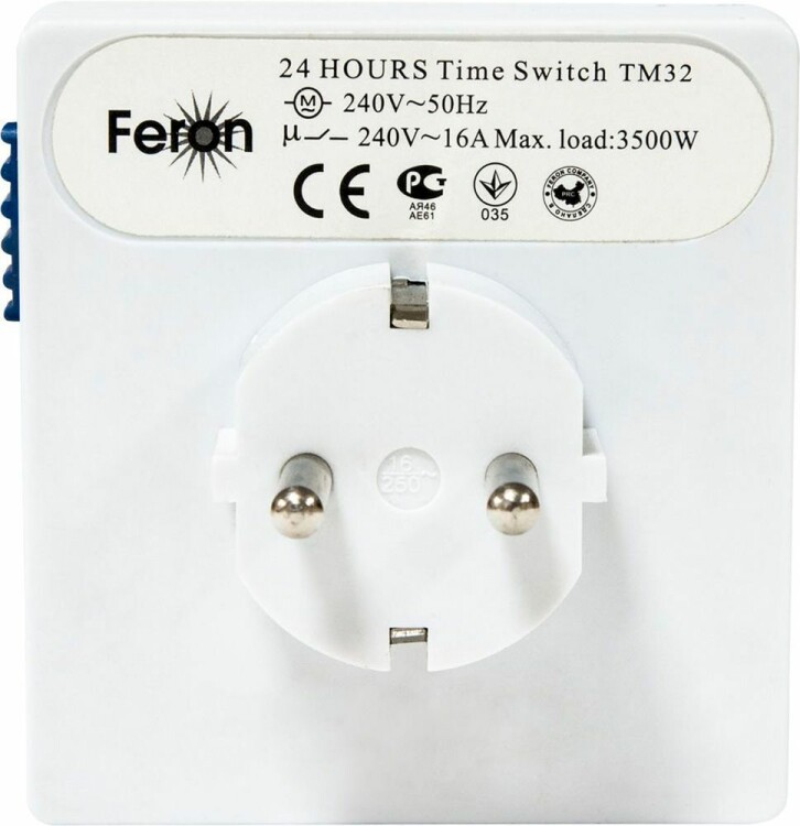 Розетка с таймером (суточная механическая), FERON TM32, IP20, 230V, 3500W/16А цвет белый, 80*80*77мм