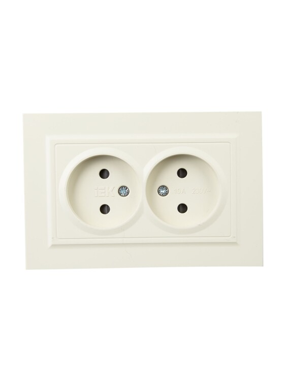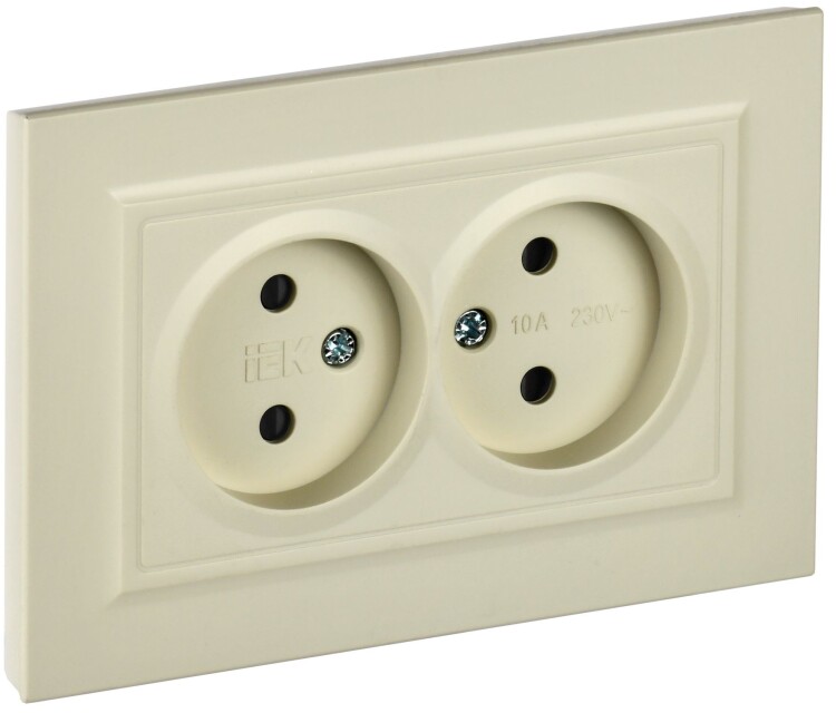 IEK BRITE Бежевый Розетка 2-я без з/к с з/ш 10А в сборе РСш12-2-БрКр