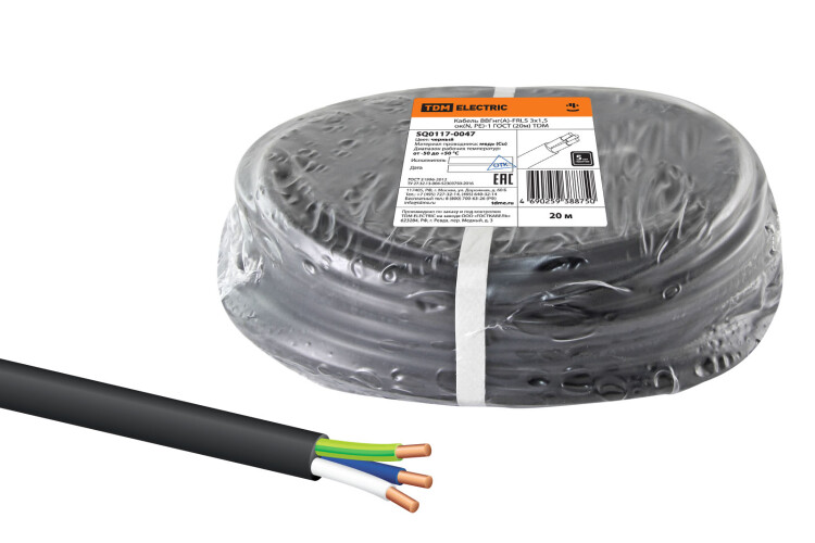 Кабель ВВГнг(А)-FRLS 3х1,5 ок(N, PE)-1 ГОСТ (20м) TDM