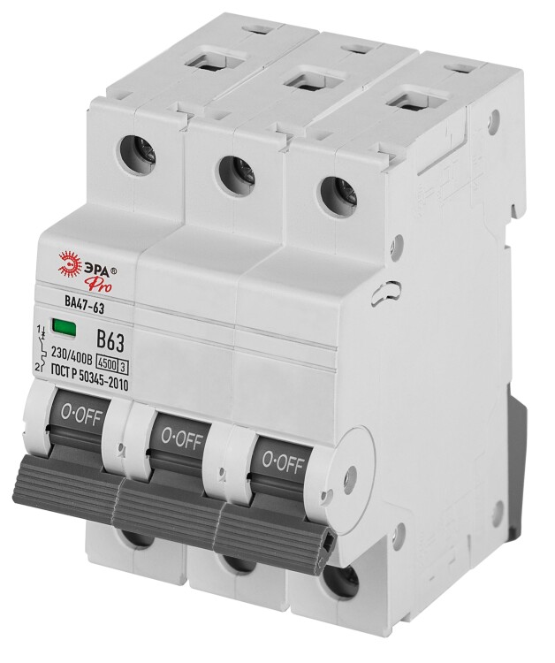 ЭРА Автоматический выключатель PRO VA63-3P10C4.5 ВА47-63 3P 10А кривая C 4,5кА