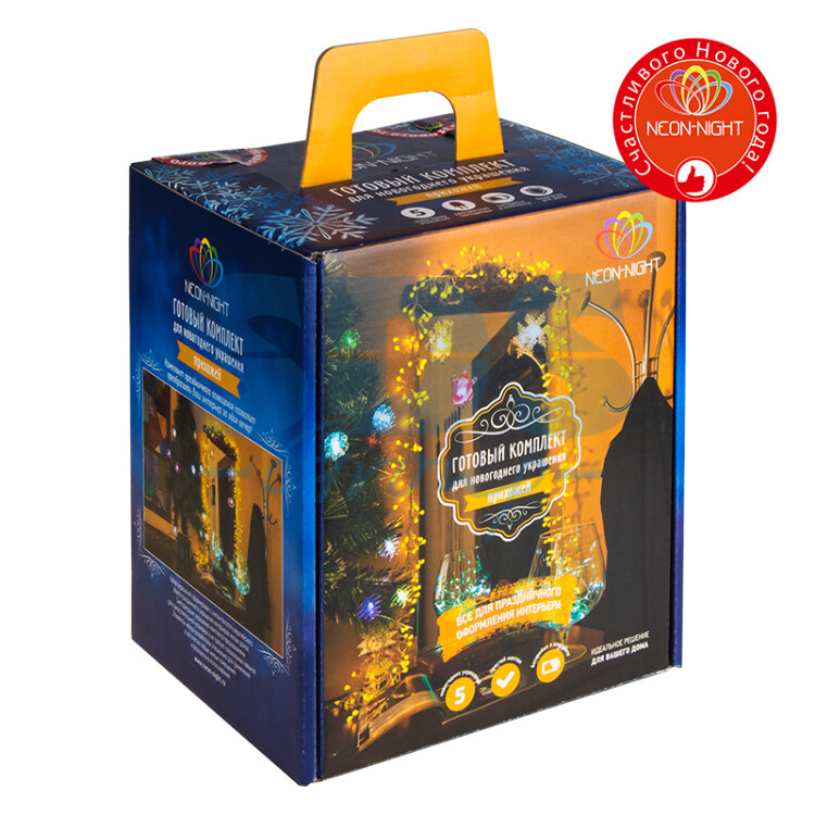 Не секрет, что самое хлопотное время в году - предновогоднее. Люди тратят массу времени и сил на поиск подарков для своих родных, близких, коллег и друзей. Подчас просто не остается времени на украшение дома и создание того самого желанного предновогоднего настроения. Специально для Вас мы разработали готовые решения для оформления каждой комнаты в доме, что значительно упростит процесс поиска и подбора украшений. Каждый из комплектов по-своему уникален, он содержит различные цветовые решения, которые подойдут для любого интерьера. Прихожая – это место, которое видим первым делом, входя в квартиру. И, конечно же, оно должно быть украшено, как и прочие помещения для создания праздничной атмосферы. Независимо от количества свободного места, Вы сможете с легкостью освежить вашу прихожую. В этот комплект мы включили: • Гирлянду «Мишура». Яркая и эффектная гирлянда, имеющая самое большое количество светодиодов для своей длины по сравнению с другими гирляндами (288 шт/3 м), станет отличным обрамлением вашего