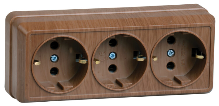 GENERICA OKTAVA РС23-3-ОД Розетка 3местн. с з/к 16А откр.уст. (дуб)
