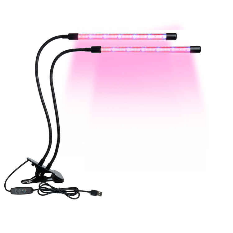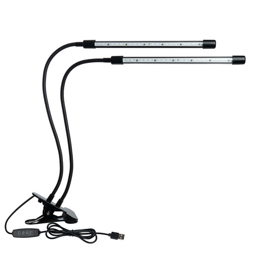 Светильник настольный для растений, На прищепке FERON DE7000, черный, 4W, DC5ВV, (красно-синий), материал пластик, алюминий, в комплекте кабель с таймером, 110*80*720мм