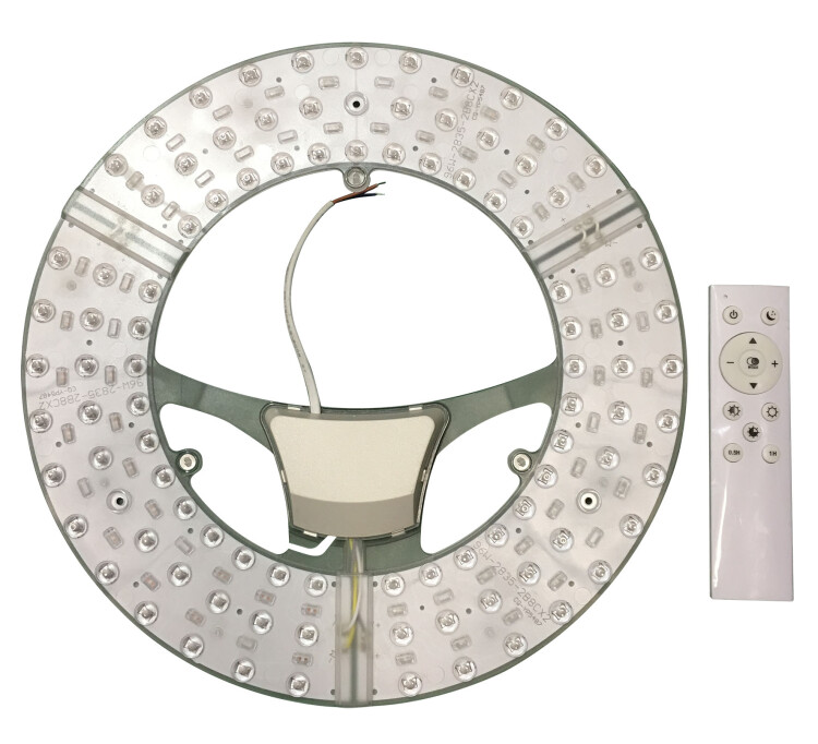 Компания ЭРА разработала и выпустила серию универсальных компонентов светодиодные модули с пультом управления. Данная разработка предназначена для замены штатных элементов или для установки в светильники, в которых источником света служила стандартная лампа. Светодиодный модуль выступает как сменный элемент, который может подойти к рассеивателям любого дизайна. Благодаря наличию пульта управления можно менять цветовую температуру в диапазоне 3000 7000 К, что позволяет использовать светодиодный светильник в помещениях с широким функционалом: от уютной спальни до строгого офиса. Корпус изготовлен из металла, в него встроен LED-модуль. Диаметр светильника составляет 32 см, мощность лампы 49 Вт, срок службы лампы составляет 30000 часов.