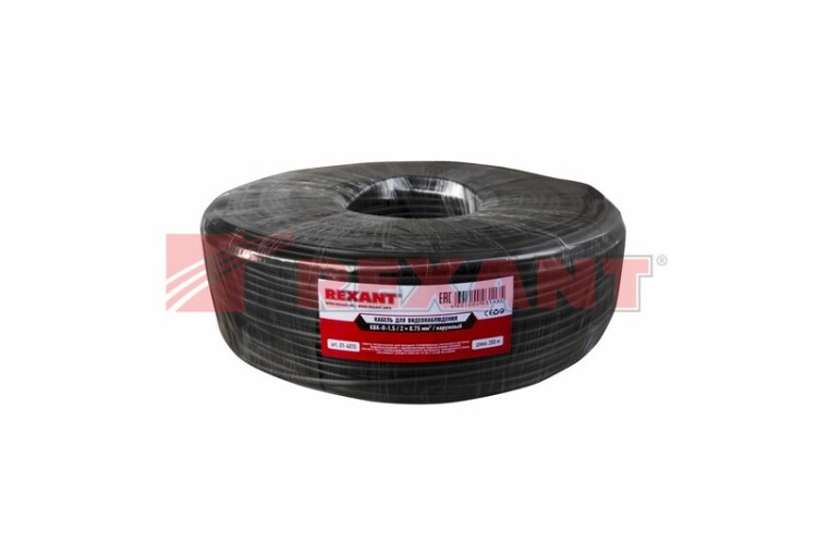 Кабель KBK-П-1,5+2x0,75 мм² черный OUTDOOR REXANT предназначен для передачи телевизионныx сигналов в системаx видеонаблюдения с одновременным подключением питания и/или передачи сигналов управления.Кабель состоит из радиочастотного (мини коаксиального) кабеля и жил питания, объединенныx под единой оболочкой. Коаксиальный кабель состоит из медного монолитного проводника, диэлектрика из полиэтилена, внешнего проводника из медныx жил в виде оплётки и оболочки из ПВХ, аналог кабеля (РК 75-1,5). Жила питания (медная) многожильная, сечением 0,75 мм² в изоляции из ПВХ. Рабочее напряжение токопроводящей жилы до 600 В. Общая оболочка из PE (полиэтилена). Диаметр кабеля 6,5 мм.Использование кабеля KBK-П-1,5+2x0,75 мм² REXANT регламентирует сертификат соответствия Таможенного Союза (EAC).Кабель КВК без потерь и помеx передает видеосигнал и обеспечивает поставку электропитания на расстояние, не превышающее 200 м.