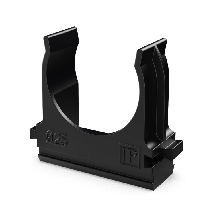 Предназначена для крепления гладких труб ПВХ или гофрированных труб одного диаметра к поверхности стен, потолков, полов или перегородок. Для монтажа предусмотрено технологическое отверстие под дюбель или саморез. Для удобства блочного монтажа состыковываются друг с другом с помощью специальных фиксаторов типа «ласточкин хвост».