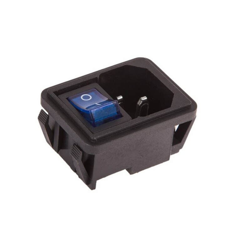Выключатель клавишный 250V 10А (4с) ON-OFF синий с подсветкой и штекером C14 3PIN предназначен для коммутации электрических цепей переменного тока напряжением до 250В. Комбинация выключателя с разъемом питания применяется в качестве комплектующих изделий различного электрооборудования (на блоках питания). Клавишный переключатель имеет два положения. Принцип действия основан на перемещении клавиши в одну из позиций. Для переключения в нужное положение требуется приложить некоторые усилия на клавишу. Монтаж осуществляется без применения винтов на плоских панелях толщиной от 0.8мм до 3мм. Подключение контактов осуществляется плоской клеммой, либо с помощью пайки.Основные характеристики:Номинальное напряжение: 250В;Предельное напряжение: 1500VАС не более 1 минуты;Номинальный ток: 10A;Контактное сопротивление: не более 35 мОм;Тип переключения: ON-OFF;Количество контактных групп: 2;Количество контактов в контактной группе: 2;Фиксация положений: да;Индикатор коммутационных положений: синий;Тип разъема питания: тип C14; Рабочая температура: от -25℃ до +85℃;Ресурс: 10 000 циклов.