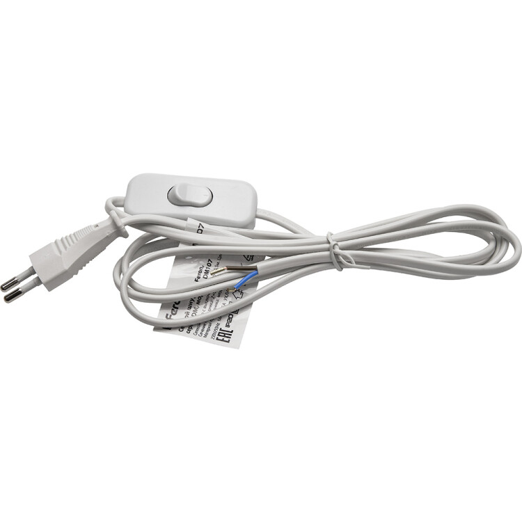 Feron Сетевой шнур (с выключателем) белый, 2м, DM107, артикул 41150