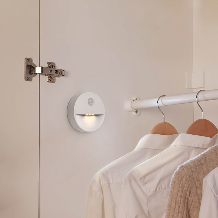 Светильник с датчиком движения и освещенности 2LED 0,5W (3хААА в комплект не входят) 3м, IP20, 72*72*25mm, круг, белый, FN1221