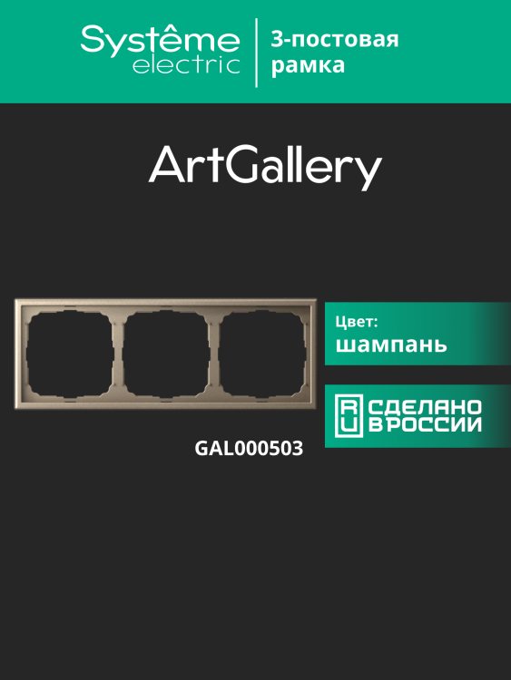 Рамка Systeme Electric серии ArtGallery в цвете шампань трёхместная.