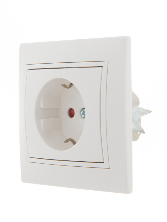 Lezard Мира белый с бел.вст. Розетка с/з с защитой от детей керамика