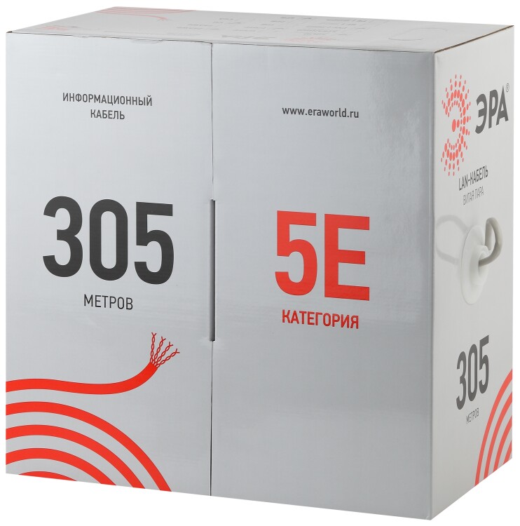 Кабель U/UTP 4x2x24 AWG Cat5e CU PVC 305м ЭРА применяется для построения компьютерных и информационных сетей, систем охраны, телефонии, центров обработки данных, цифрового телевидения и видеонаблюдения (в том числе с PoE+), внутри и вне помещений при защите от осадков и солнечного излучения.