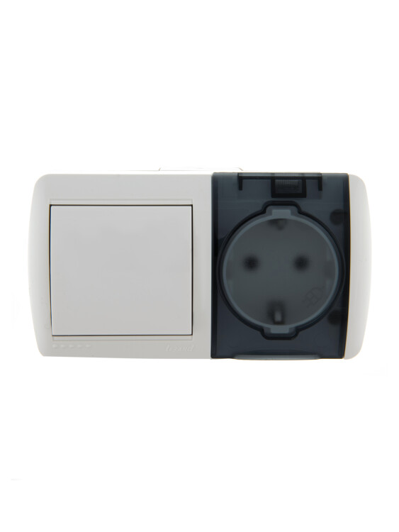 Lezard Ната белый Выключатель и розетка с/з, с крышкой, горизонтальный 1/10/120