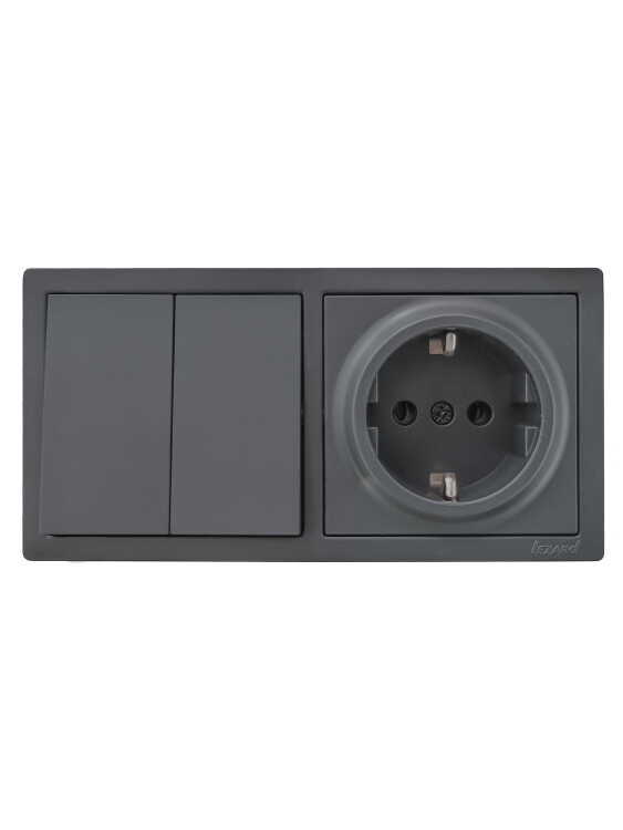 LETO Выключатель двойной и розетка с/з,графит горизонталь (10шт/120шт)