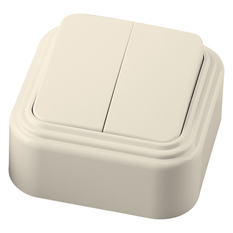 Выключатель двухклавишный STEKKER PSW06-22-20, серия Брест тип установки - открытый, размер изделия 65*65*37мм., цвет слоновая кость, материал изделия ABS пластик, латунь, нержавеющая сталь. Номинальное напряжение 250 , номинальный ток 6А, IP20