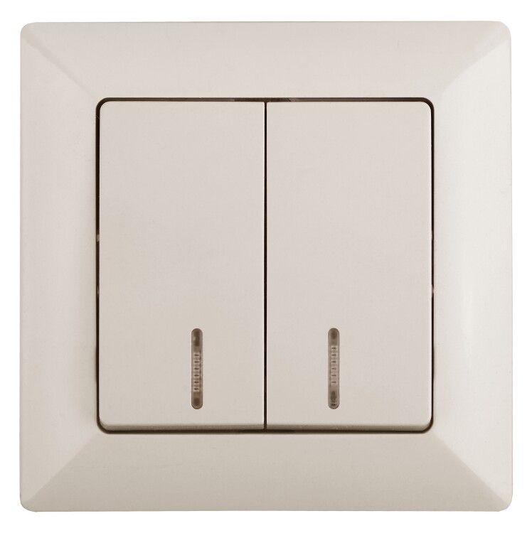 Intro Выключатель Solo 4-105-02 двухклавишный с подсветкой, 10А-250В, IP20, СУ, слоновая кость