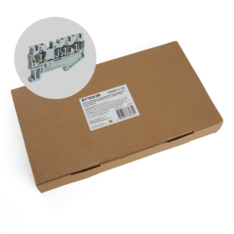 LD553-1-25 ЗНИ Зажим самозажимной, 3-проводной проходной 2,5 мм? (JXB ST 2,5), серый