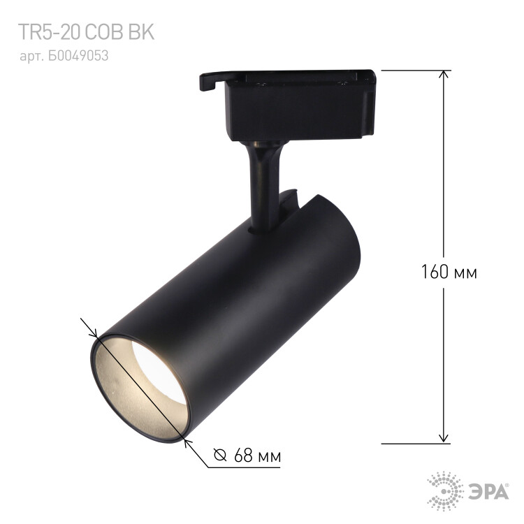 ЭРА Трековый светильник однофазный TR5-2040 BK светодиодный 20Вт 4000К черный