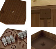 Материалы:ПС (полистирол) Преимущества:Коробки имеют современный дизайн, отвечают требованиям стандартов безопасности.Расцветка, имитирующая цвет дерева, для создания привлекательного интерьера. Могут использоваться как отдельно, так и в системе с кабель-каналами и гофротрубами из ПВХ аналогичного цвета.Назначение:Предназначены для разветвления проводов и кабелей, для крепления на стены, потолки и защиты от механических повреждений мест соединения проводов и кабелей.Используются как часть системы электрической канализации, состоящей из кабель-канала и гофрированных труб. Упаковка:Термоусадочная пленка Конструкция:На внутренней стороне крышки нанесены специальные риски для вырезов под провод, кабель-канал или кабель.Клеммники внутри коробки позволяют надежно зажимать проводники сечением от 1,5 до 6 мм.
