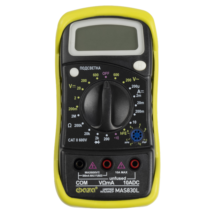 Все мультиметры серии MAS83 комплектуются защитным чехлом, который можно использовать как подставку, позволяющую установить прибор под углом. Мультиметры этой серии обладают функцией фиксации последних результатов измерений (HOLD).
