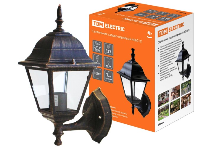 TDM Светильник 4060-11 садово-парковый четырехгранник, 60Вт, вверх, бронза