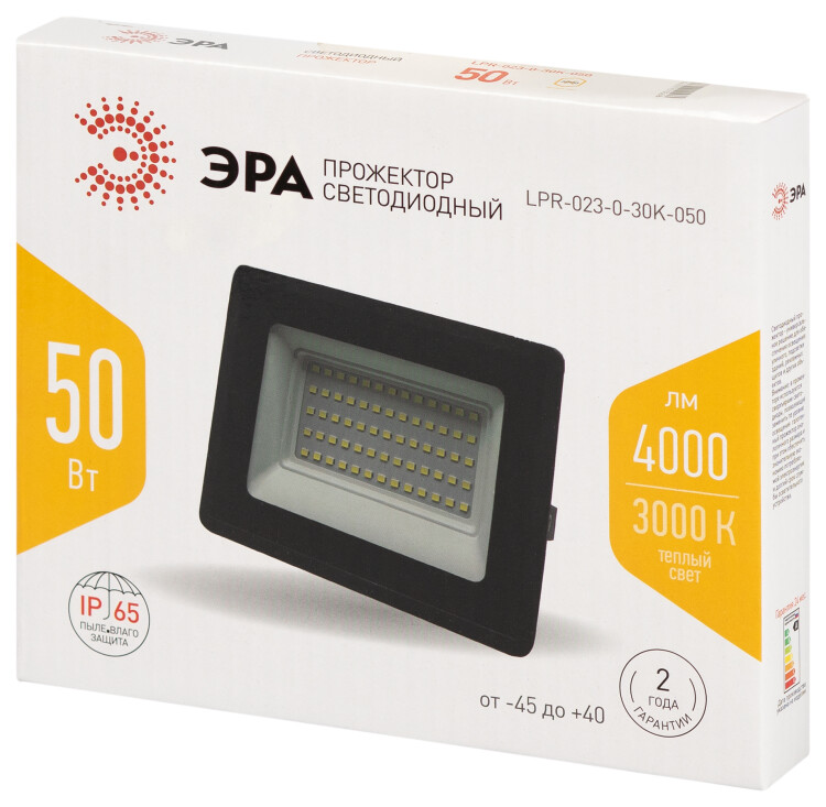 ЭРА Прожектор светодиодный уличный LPR-023-0-30K-050 50Вт 3000K IP65 гарантия 2 года