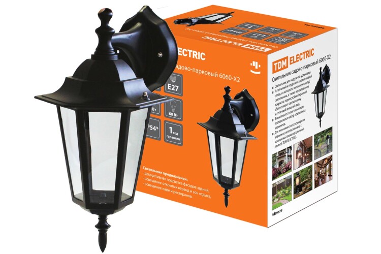 TDM Светильник 6060-02 садово-парковый шестигранник, 60Вт, вниз, черный
