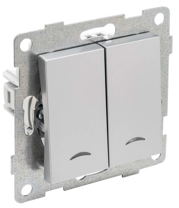 GUSI Ugra МЕХАНИЗМ Выкл. 2кл. индик., скрытая установка, 10А, 250В. Цвет: серебро.