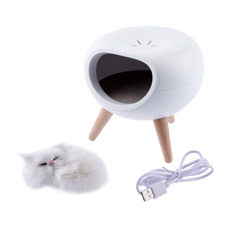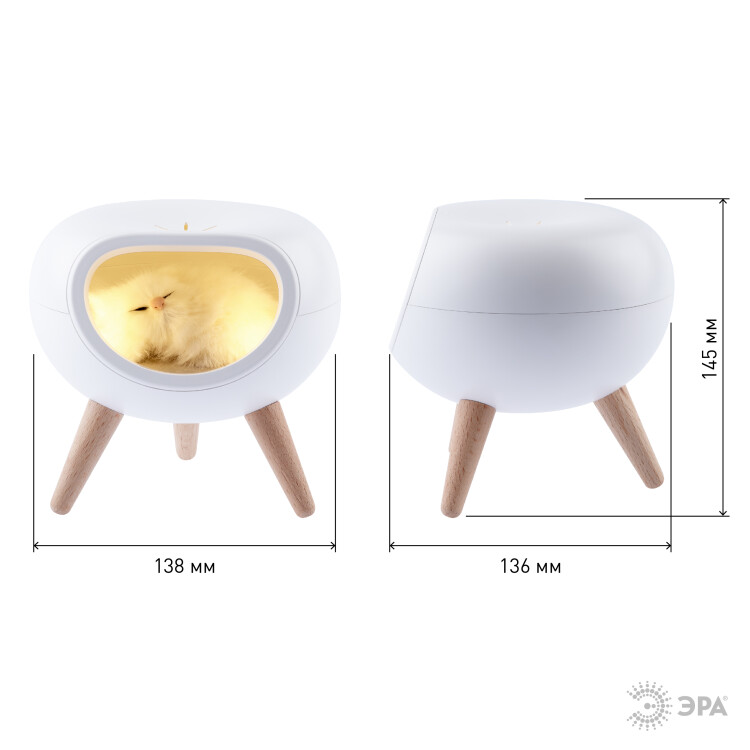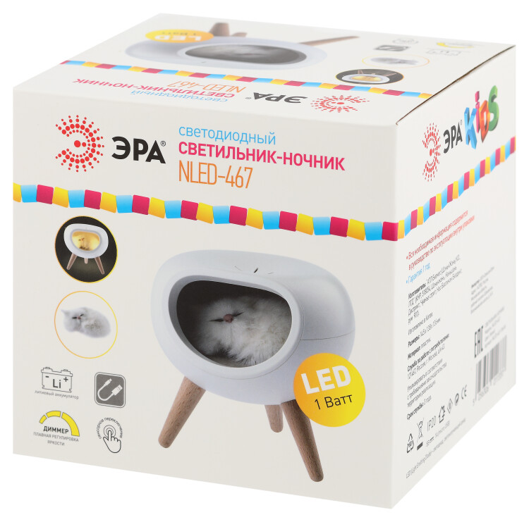 Автономный светильник-ночник ЭРА NLED-467-1W-W со светодиодами (LED). Ночник выполнен в виде стильного корпуса-домика на деревянных ножках, в котором "живет" пушистый котик. Домик светится изнутри. Пушистого котика можно вытащить. Внутри светильника котик крепится на магнит, будет держаться на любой другой металлической поверхности. Встроенный литиевый аккумулятор для автономной работы. Подзарядка от USB. USB-кабель в комплекте. Плавная регулировка яркости (прикосновением и удерживанием сенсорной кнопки на фронтальной части). Выключатель на корпусе. Светодиодный светильник-ночник ЭРА создаст для вас уютную подсветку и хорошее настроение.