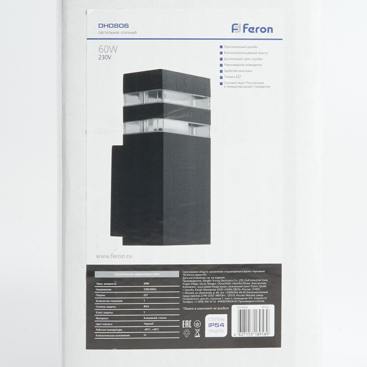 Светильник садово-парковый, серии «Сеул», (НБУ) FERON DH0806 60W, E27, 230V, IP54, цвет черный, на стену вверх, 110*65*195мм