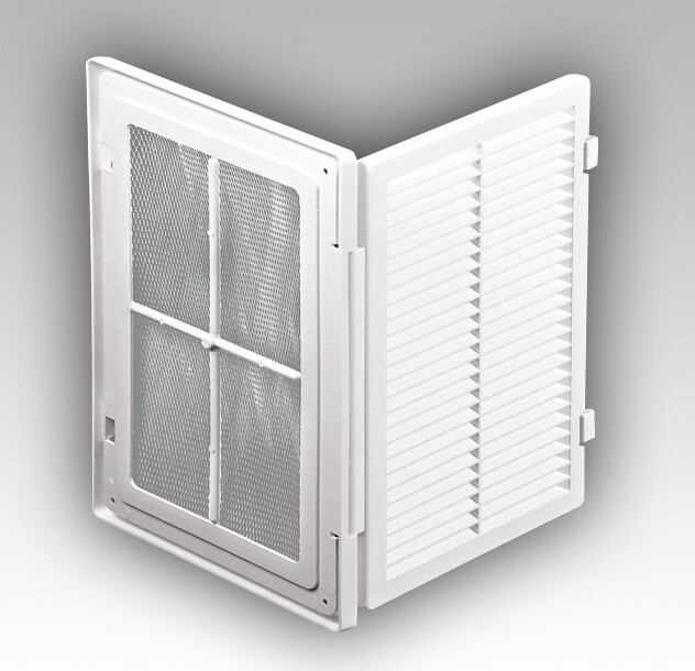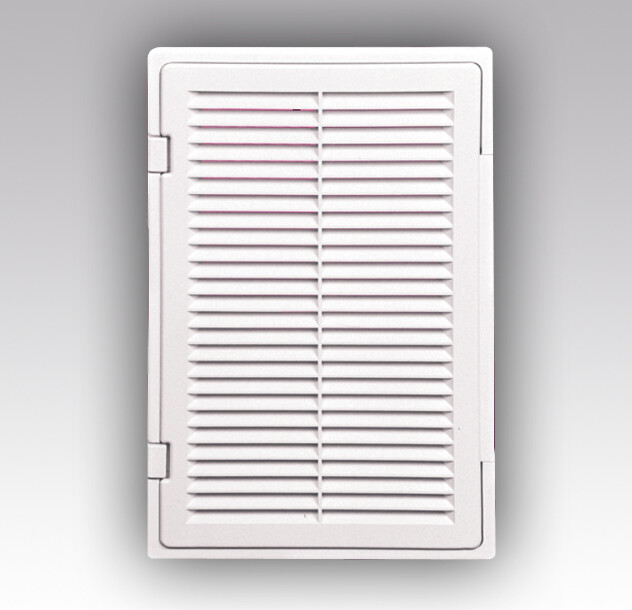 2. вентиляционной решетки для оформления выходных отверстий каналов приточно-вытяжной вентиляции. По сравнению с обычной вентиляционной решеткой преимущество данного изделия состоит в том, что дверца решетки легко открывается (для удаления грязи, замены сетки и т.д.) и устанавливается обратно. Применяются для доступа к скрытым элементам инженерных коммуникаций, а также для оформления выходных вентиляционных отверстий