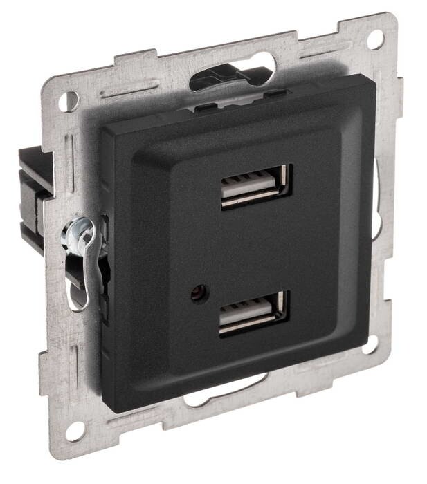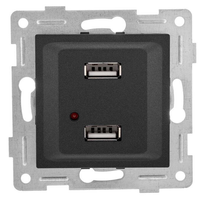 GUSI Ugra МЕХАНИЗМ розетки USB, двойной, скрытая установка. Цвет графит.